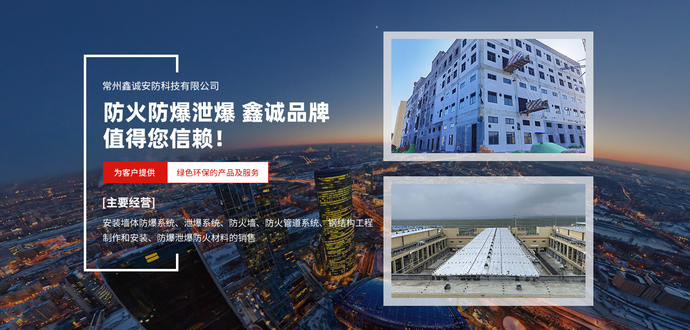 常州鑫誠安防科技有限公司主要經營、安裝墻體防爆系統、泄爆系統、防火墻、防火管道系統、鋼結構工程制作和安裝、防爆泄爆防火材料的銷售。公司是行業誕生起初最早的一批,自建立以來幫助全國10000家化工石油制藥類企業完新建項目及改造驗收。秉承《14J938 抗爆、泄爆門窗及屋蓋規范》產品質量穩定、優良,價格優惠。經營產品有檢測報告,在全國各大城市都有樣板工程案例。我們將一如即往的為客戶提供綠色環保的產品及服務。歡迎新老客戶來人來電咨詢我公司產品與技術。 我們永遠以“用戶為上、誠信為本”為企業宗旨。積極 致力于新產品、新工藝、新技術的引進與推廣。不斷追求高質量、高目標,以精良的產品和完善的售前售后服務回饋社會各界的支持與信賴。公司堅持秉承“以優質的產品、合理的價格服務于社會”做為企業經營理念,以“互惠互利,共謀發展”做為企業發展目標。在全體員工不懈努力下,鑫誠品牌已在全國各地醫藥、化工、包裝、電子等工業項目廣泛應用。公司本著創建“用戶為上、誠信為本”宗旨,完善建成“管理、質量、效益、服務”為上的現代企業。 我們是一支年輕的充滿活力的但是經驗豐富的團隊,我們喜歡挑戰,喜歡高難度作業、高空作業、大面積作業、趕工期作業。公司注重產業鏈的內生和外延,積極拓展防火防爆相關業務,并取得輝煌業績。 防火防爆泄爆 鑫誠品牌值得您信賴!